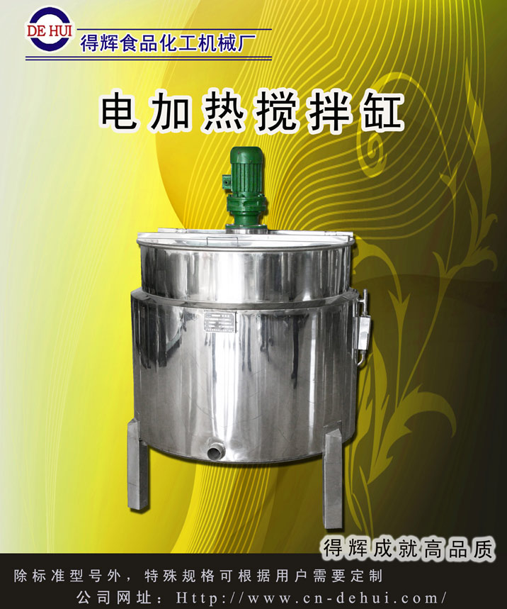 系列不锈钢电加热搅拌缸适用于日用化工、精细化工、医药、食品等行业广泛应用。间接加热缸内物料,使其均匀溶解、调合。它具有结构设计合理、坚固耐用,效率高、运转平稳、噪音小、机温低,安装操作方便等优点。100度以下用水加热、100度以上用导热油加热。可按客户要求在缸体的表面加上保温棉及不锈钢板装饰,加装配置电温度控制箱,节能安全可随意调节温度达到生产目的。 |